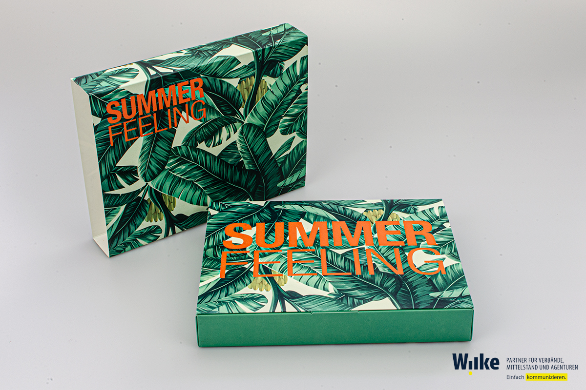 Produkte können übereinander oder nebeneinander verpackt werden. Möchtest du die SINNbox als Mailing versenden, bieten wir mit unserem SINNglanz eine postzertifizierte Folie an. Das Besondere: die SINNbox kann in allen Größen als Groß- oder Maxibrief verschickt werden – das heißt, es ist kein teures Päckchen oder Paket! SINNreich!